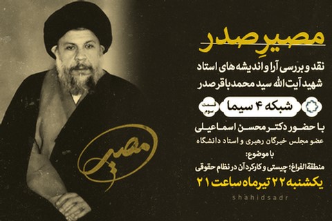 به گزارش ایکنا؛ به نقل از اجتهاد، قسمت بیست‌ویکم برنامه مصیر «ویژه‌ برنامه بررسی آراء و اندیشه‌های شهید محمدباقر صدر» با حضور محسن اسماعیلی، یکشنبه ٢٢ تیر ماه ساعت ٢١ از شبکه چهار سیما به روی آنتن می‌رود.