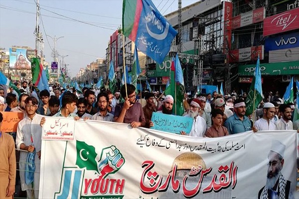 در راولپندی هزاران نفر از مردم به رهبری «سراج الحق»، نماینده مجلس پاکستان و رهبر حزب جماعت اسلامی این کشور تظاهرات کردند. این حزب، برای اعلام همبستگی با مردم فلسطین، امروز را روز فلسطین نامگذاری کرده بود.