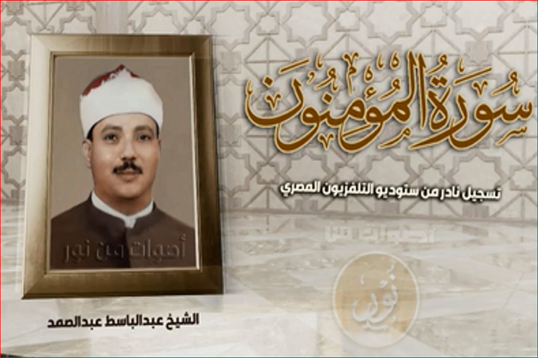 به گزارش ایکنا؛ استاد عبدالباسط در این تلاوت آیاتی از سوره مؤمنون را به زیبایی تلاوت کرده و این اجرا در استودیوی تلویزیون مصر ضبط شده است.