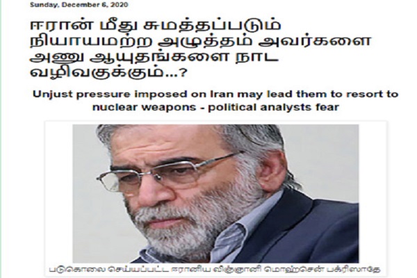 مقاله در ادامه به موضوع ترور شهید پرداخته و بیان داشته این احمقانه است كه تصور كنیم حذف یک دانشمند هستهای میتواند مانع پیشرفت و توسعه فناوری در یک كشور شود؛ زیرا مسائلی مانند علم و فناوری در هیچ جای دنیا صرفاً به افراد بستگی ندارد اما ترور محسن فخریزاده نشان داد كه دشمنان ایران برای جلوگیری از پیشرفت علم در ایران، حاضرند هر اقدامی را انجام دهند و در این راه همیشه اسرائیل پیش قدم بوده و در سالهای گذشته دانشمندان هستهای دیگری را نیز در ایران ترور کرده است و همواره موضوع تلاش برای دستیابی به سلاح هستهای از سوی ایران بهانه این اقدامات و تبلیغات قرار داشته درحالی که ایران از طریق توافقنامه موسوم به برجام حسن نیتش را نشان داد و این ترامپ و آمریکا بودند که از آن خارج شدند.