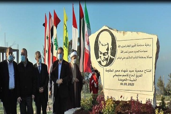 در نخستین سالگرد ترور شهید سپهبد حاج قاسم سلیمانی، حزب‌الله لبنان منطقه‌ای حفاظت شده در جنوب این کشور را به نام این فرمانده شهید نامگذاری و یادمانی از وی در آن نصب کرد.