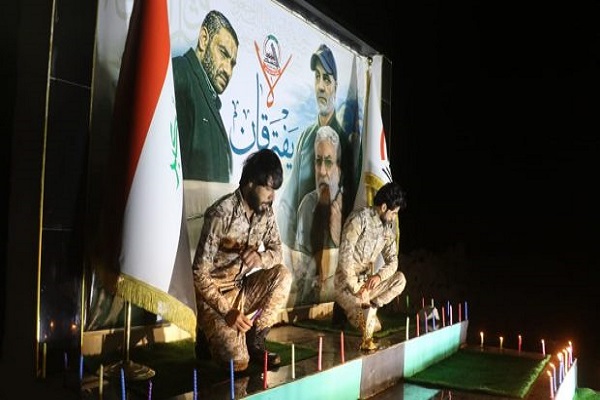 رزمندگان تیپ 19 الحشد الشعبی هم شب گذشته در شهر المسئولیه در غرب استان الانبار و نزدیک مرز عراق و سوریه با روشن کردن شمع یاد شهیدان سلیمانی و ابومهدی گرامی داشتند.