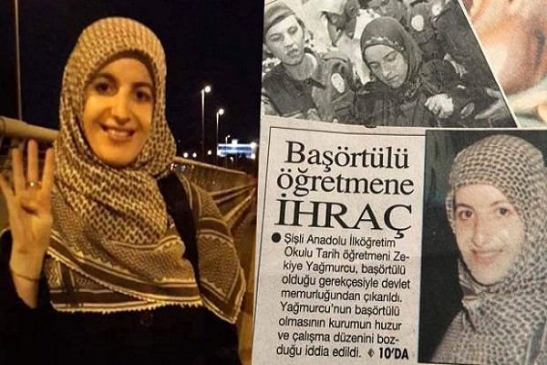 زکیه یاغمورجو که در جریان کودتای پست مدرن 28 فوریه 1997 در گروه تاریخ دانشکده ادبیات دانشگاه استانبول تحصیل میکرد و همزمان معلم تاریخ نیز بود به دلیل حضور در کلاسهای درس با حجاب اسلامی اخراج شد؛ اما پس از گذشت 14 سال دوباره به سر کار خود بازگشته بود و به سمبل دفاع از حجاب در ترکیه تبدیل شد.