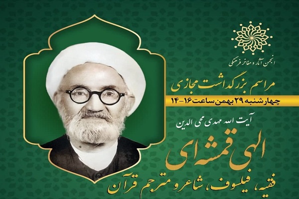 به گزارش ایکنا، مراسم بزرگداشت مقام علمی و فرهنگی حکیم میرزا مهدی محیالدین الهیقمشهای، فقیه، فیلسوف، شاعر و مترجم قرآن، چهارشنبه، 29 بهمنماه، از ساعت 14 تا 16 به صورت مجازی برگزار و از طریق نشانی https://www.skyroom.online/ch/farhang/anjomanmafakher و https://www.instagram.com/anjomanasarmafakher2 پخش خواهد شد.