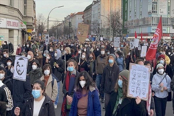 آناتولی، هزاران تظاهراتکننده در برلین روز گذشته، دوم اسفند راهپیمایی کردند تا یاد قربانیان حمله نژادپرستانه سال 2020 در هانائو را گرامی بدارند.