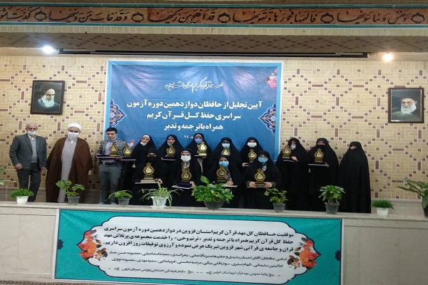 به گزارش ایکنا، به نقل از پایگاه اطلاعرسانی مؤسسه مهد قرآن، آئین تجلیل از 12 نفر از حافظان کل قرآن کریم عضو مهد قرآن قزوین قبول شده در دوازدهمین دوره آزمون سراسری حفظ کل قرآن «ترنم وحی» ۱۳۹۹ با حضور نماینده ولیفقیه در استان و امام جمعه قزوین در محل دفتر امام جمعه این استان مورد تجلیل قرار گرفتند.