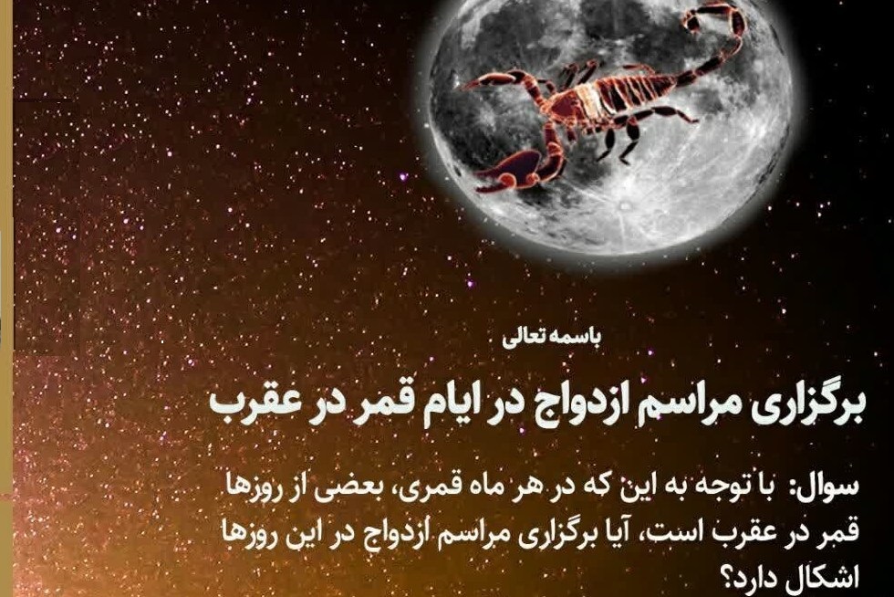 سؤالی که ممکن است برای برخی متدینین پیش بیاید این است که آیا با توجه به اینکه در هر ماه قمری، بعضی از روزها قمر در عقرب است، آیا برگزاری مراسم ازدواج در این روزها اشکال شرعی دارد؟