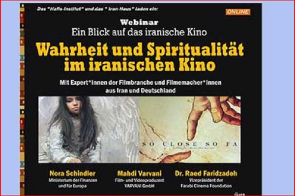 به گزارش ایکنا به نقل از سازمان فرهنگ و ارتباطات اسلامی، «انستیتو فرهنگی حافظ» در برلین با همکاری و مشارکت «خانه ایران» در آلمان، «بنیاد سینمایی فارابی» در تهران، فستیوال فیلم کاتبوس براندنبورگ آلمان و «شرکت فیلم سازی واروانی» در فرانکفورت، همزمان با برگزاری جشنواره فیلم برلین نشست «نگاهی به سینمای ایران؛ حقیقت و معنویت در سینمای ایران» را با شرکت جمعی از کارشناسان صنعت فیلمسازی و فیلمسازان ایرانی و آلمانی در فضای مجازی برگزار کرد. این برنامه در بستر شبکه اجتماعی یوتیوب منتشر شد.