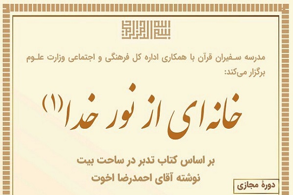 به گزارش ایکنا، دوره «خانهای از نور خدا» از سوی مدرسه سفیران قرآن از مجمع مدارس قرآن و عترت دانشگاه تهران با همکاری ادارهکل فرهنگی و اجتماعی وزارت علوم برگزار میشود.