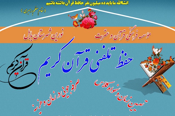 دوره حفظ تلفنی قرآن ویژه تمام علاقه‌مندان از سوی مؤسسه فرهنگی قرآن و عترت نورین بابل برگزار می‌شود.