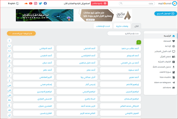 به گزارش ایکنا؛ در «Mp3Quran» که از سوی مسلمانان در بخش‌های مختلف جهان برای دانلود تلاوت‌های صوتی مورد استفاده قرار می‌گیرد، تلاوت‌هایی به روایت‌های مختلف براساس نام قاریان به ترتیب حروف الفبا بارگذاری شده است.