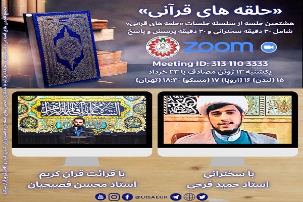 لینک شرکت در برنامه به نشانی «https://us02web.zoom.us/j/3131103333» و آی دی «313 110 3333» اعلام شده است و موضوعات مورد بررسی در حلقههای قرآنی بریتانیا براساس مشکلات اجتماعی و دغدغه جوانان و دانشجویان ایرانی خواهد بود و این موضوعات از دیدگاه قرآنی مورد بحث و بررسی قرار خواهد گرفت.