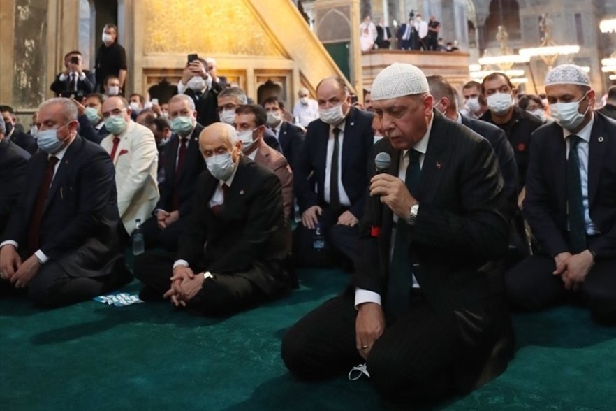 به گزارش ایکنا به نقل از خبرگزاری آناتولی ترکیه، رجب طیب اردوغان، رئیس جمهور ترکیه پس از زیارت قبرستان کاراجا احمد، نماز جمعه امروز، ۲۵ تیر را در مسجد کبیر ایاصوفیه اقامه کرد.