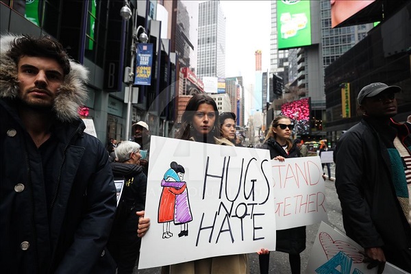 مخالفان پریسلر هم روز سه شنبه تظاهراتی با عنوان نه به نفرت و تبعیض در نیویورک و نه به حملات فاشیستی علیه دموکراسی ترتیب دادند.
