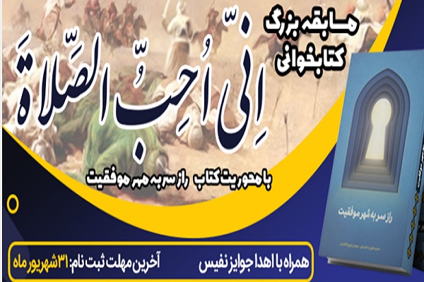 به گزارش ایکنا، مسابقه کتابخوانی «اِنّی اُحِبُّ الصّلاةَ» با محوریت کتاب «راز سر به مهر موفقیت» از سوی مؤسسه فرهنگی ـ هنری، قرآنی ثقلین یزد برگزار میشود.