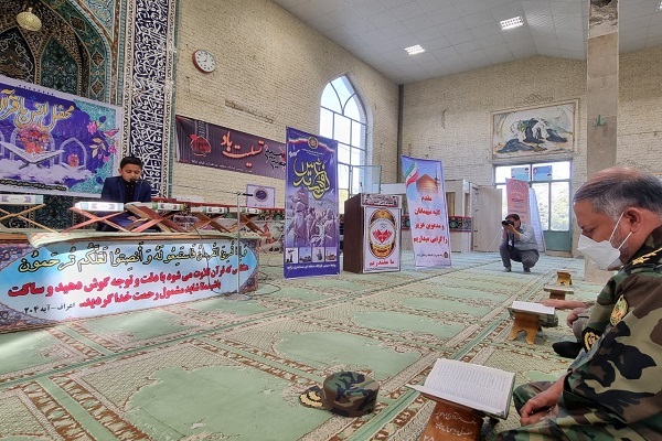 در ادامه این مراسم، محمدطه درودی، نفر اول مسابقات قرآن نیروی زمینی ارتش به قرائت آیات سوره ق پرداخت و از ایشان که از قاریان مؤسسه اظهرالجمیل الاعلی مشهد است با اهدای لوح تقدیر و هدیه نقدی قدردانی شد.