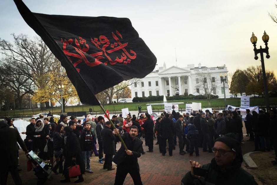 گروه زیادی از شیعیان مقیم آمریکا از جمله پاکستانیهای مقیم با در دست داشتن پرچمهای یا حسین(ع)، مراسم عزاداری و سینهزنی در ایام اربعین سیدالشهداء را مقابل کاخ سفید برگزار کردند.