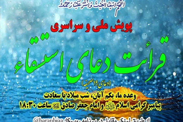 پخش زنده قرائت این دعای از طریق نشانی اینترنتی rubika.ir/baranbiaa در برنامه روبیکا، قابل دسترسی است.