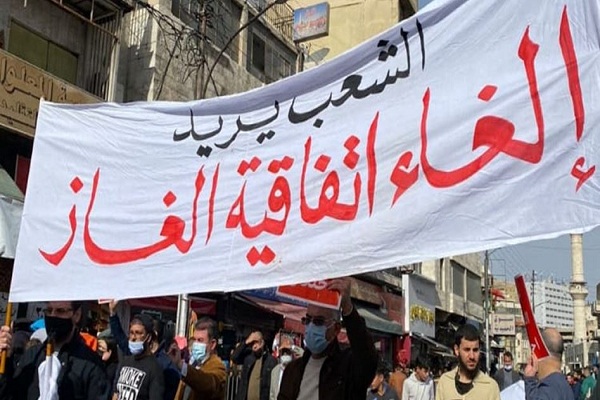 تظاهراتکنندگان با سردادن شعارهایی از دولت اردن خواستند تا قراردادهای گاز و دیگر توافقنامههای امضا شده با این رژیم را لغو کنند.