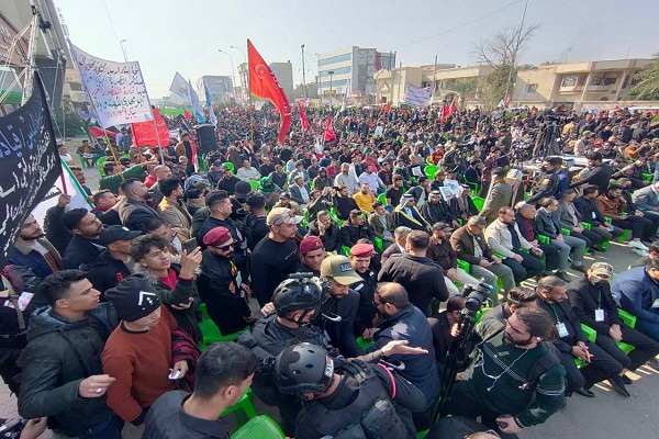 تجمع ده‌ها هزار نفری در بصره برای اعلام وفاداری به شهیدان سلیمانی و ابومهدی