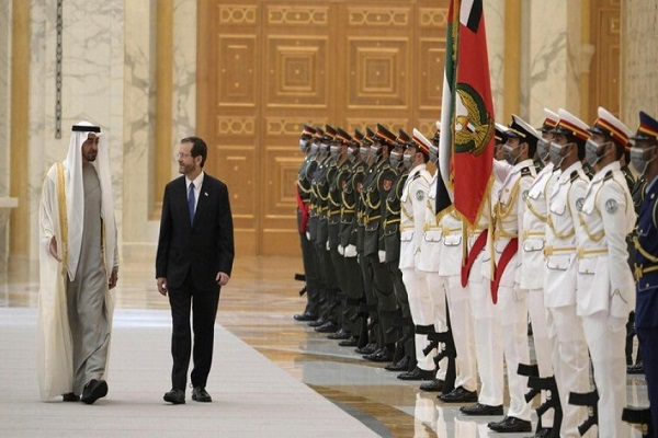 در این سفر که نخستین سفر رئیس رژیم صهیونیستی به امارات بود، هواپیمای حامل اسحاق هرتزوگ برای رسیدن به امارات از آسمان عربستان سعودی عبور کرد.
