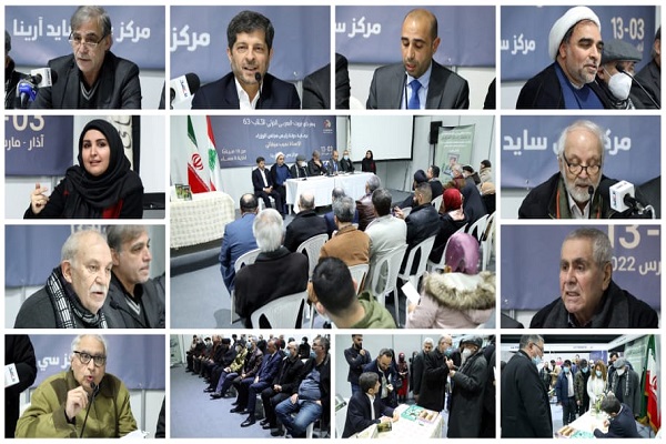 در این مراسم که دکتر خضر نبها، استاد فلسفه و کلام دانشگاه لبنان مدیریت این نشست را بر عهده داشت، دکتر سیمان علوش، نماینده وزیر فرهنگ لبنان، حجتالاسلام محمد اسدی موحد، مدیرعامل مؤسسه فرهنگی، هنری و انتشارات بینالمللی الهدی، پروفسور علی زیتون، استاد گروه زبان و ادبیات عربی دانشگاه لبنان، دکتر طراد حماده، شاعر سرشناس و وزیر سابق کار لبنان، مریم میرزاده، نویسنده و پژوهشگر ایرانی، لویس صلیبا المستهند، استاد علوم دینی و تاریخ ادیان، میشل نوفل، کارشناس و پژوهشگر مسائل غرب آسیا و دکتر عباس خامهیار پیرامون محتوای کتاب به سخنرانی پرداختند.