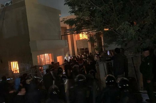 معترضان با شعار «مراجع دینی، خط قرمز ما هستند» مقر حزب دموکرات کردستان عراق در بغداد را به آتش کشیدند.