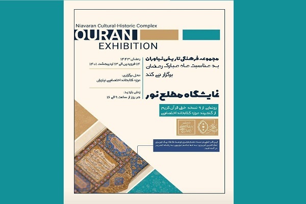 این نمایشگاه از 14 فروردین 1401 تا پایان ماه مبارک رمضان، 13 اردیبهشت 1401 در موزه کتابخانه اختصاصی نیاوران برپاست و علاقهمندان میتوانند همه روزه از ساعت ۹ تا ۱۶ به مجموعه فرهنگی تاریخی نیاوران واقع در میدان شهید باهنر (نیاوران) مراجعه کنند.