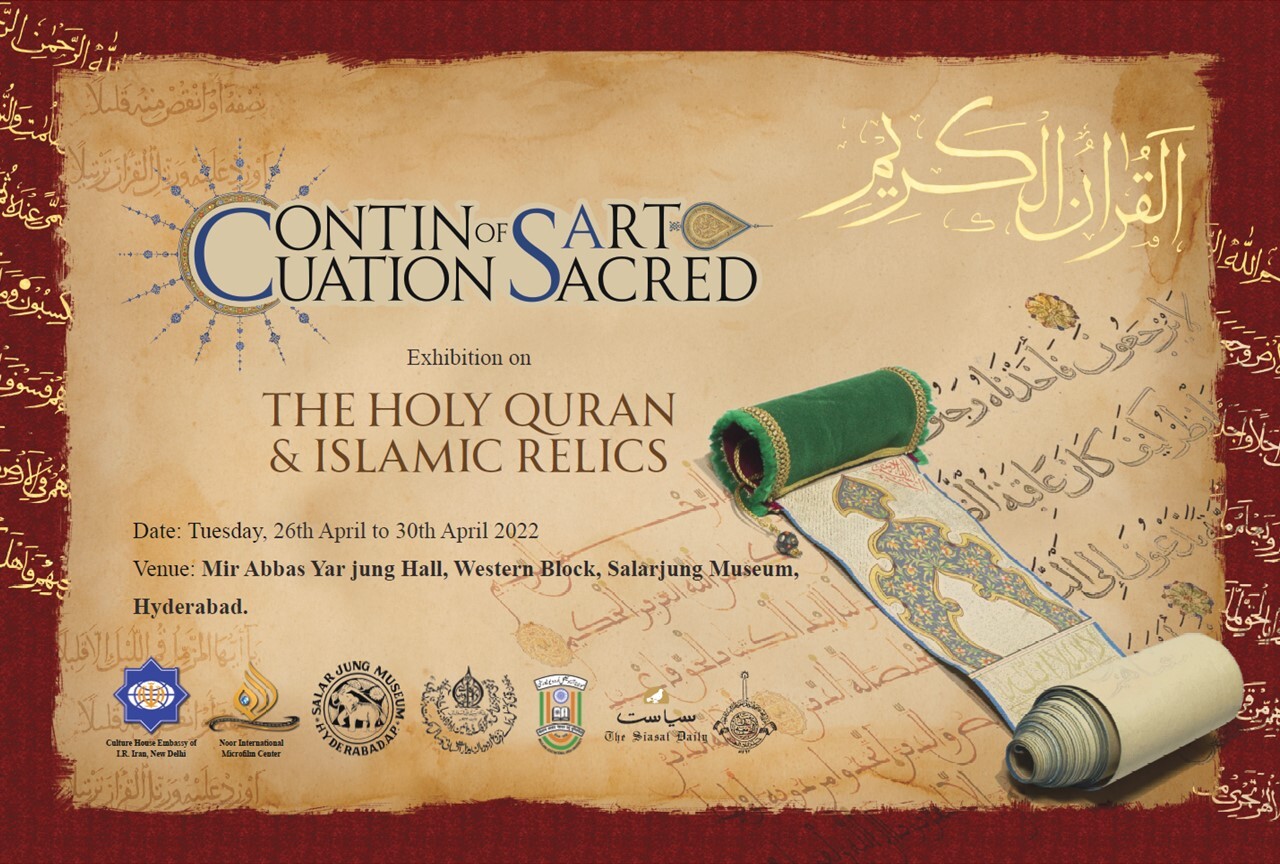 نمایشگاه تداوم هنر قدسی به مدت پنج روز و از تاریخ ۲۴ تا ۲۸ ماه مبارک رمضان در ضلع غربی موزه سالار جنگ حیدرآباد در سالن میر عباس یار جنگ برگزار خواهد شد.