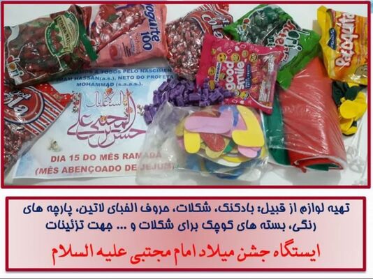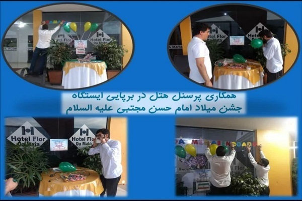 یعنی: "چه فکر جالبی! تو میتوانی این کار را انجام بدهی. ما هم حتما به تو کمک میکنیم." واقعا خوشحال شدم. بدون فوت وقت، رفتم به فروشگاه و از انواع شکلاتی که برزیلیها دوست داشتند، خرید کردم. بعد نشستم پشت سیستم و اطلاعیهای آماده کردم و در آن میلاد امام مجتبی ع را تبریک گفتم و پرینت گرفتم. بعد یکی از میزهای رستوران را با کمک مدیر هتل، به مقابل درب ورودی انتقال دادم و با وسائل تزئینی و عکس پرچم ایران اسلامیِ عزیز که داشتم، شروع به زیباسازی فضا کردم. وقتی خودم دست به کار شدم، دیدم چند نفر از مردم هم آمدند و کمک کردند. بعد که فضاسازی شد، بستههای شکلات را آوردم و روی میز گذاشتم. هر کسی عبور میکرد، ضمن پذیراییِ از او، سوژهی خوبی بود تا به آن بهانه، باب گفتگو را باز کنم و دربارهی اسلام و اهلبیت علیهمالسلام، با او به بحث بنشینم.