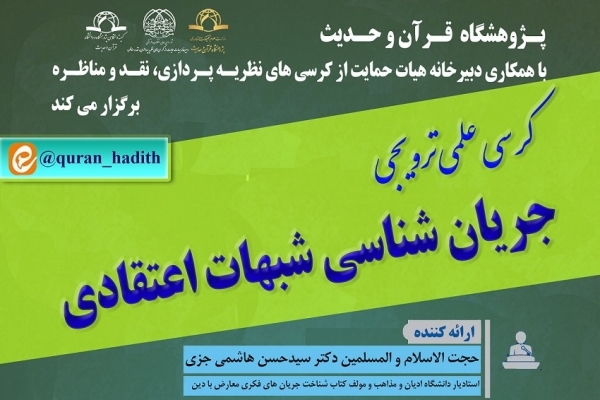 کرسی علمی ترویجی «جریان شناسی شبهات اعتقادی» از سوی پژوهشگاه قرآن و حدیث با همکاری دبیرخانه هیئت حمایت از کرسی‌های نظریه‌پردازی، نقد و مناظره برگزار می‌شود.
