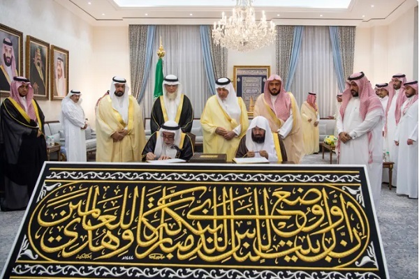 مراسم تحویل در دفتر امیر مکه در منا برگزار شد. پرده کعبه از ابریشم طبیعی خالص توسط مجتمع ملک عبدالعزیز در منطقه ام الجود در مکه ساخته شده است.