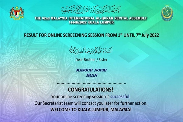مرحله نهایی مسابقات بینالمللی قرآن کشور مالزی مهرماه امسال به صورت حضوری برگزار میشود.