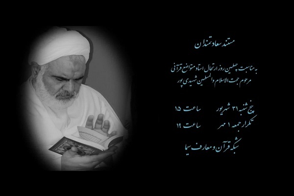 پخش این مستند، درباره زندگی و منش این استاد فقید قرآنی پنجشنبه، ۳۱ شهریورماه، ساعت ۱۵ و تکرار آن جمعه، ۱ مهرماه، ساعت ۱۹ است.