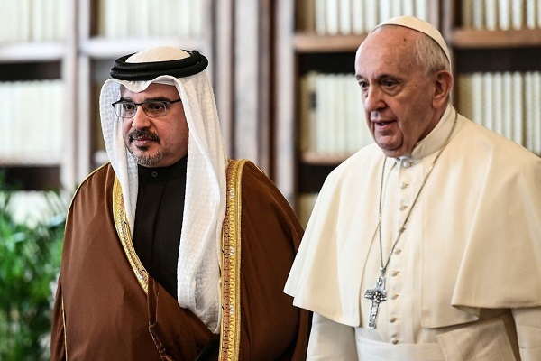پاپ فرانسیس در سال 2014 با «حمد بن عیسی آل خلیفه» پادشاه بحرین در واتیکان دیدار کرده و در سال 2019 هم به ابوظبی در امارات متحده عربی رفته بود.
