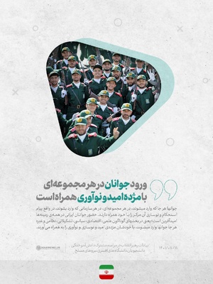 جوانها هر جا که وارد میشوند، در هر مجموعهای، در هر سازمانی که وارد بشوند، در واقع پیام استحکام و نوسازی آن مرکز را با خود همراه دارند. حضور جوانان ایرانی در همهی زمینهها امیدآفرین است؛ یعنی در بخشهای گوناگون علمی، اقتصادی، سیاسی، تشکیلاتی، نظامی و غیره، هر جا جوانها وارد میشوند، با خودشان مژدهی امید و نوسازی و نوآوری را به همراه میآورند. [حضرت آیتالله خامنهای، رهبر معظم انقلاب؛ ۱۴۰۱/۰۷/۱۱]