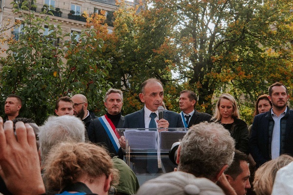 دهها تن از هواداران زمور بعد از ظهر روز شنبه در پنجمین منطقه تجمع پاریس و در پی فراخوانی که در شبکههای اجتماعی برای «مقابله» با گسترش نمادهای دینی اسلامی در مدارس اقدام کرده بود، تجمع کردند.