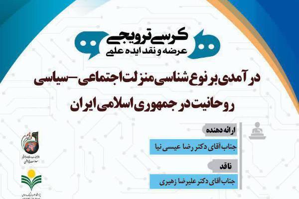 کرسی ترویجی عرضه و نقد ایده علمی «درآمدی بر نوعشناسی منزلت اجتماعی سیاسی روحانیت در جمهوری اسلامی ایران» از سوی پژوهشگاه علوم و فرهنگ اسلامی برگزار میشود.