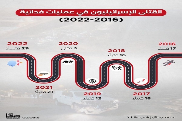به گزارش ایکنا، به نقل از مرکز اطلاعرسانی فلسطین، در سال میلادی جاری تاکنون 29 صهیونیست کشته شدهاند که در سالهای اخیر بیسابقه بوده است.