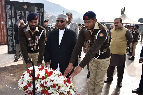 وزارت امور خارجه پاکستان در بیانیهای اعلام کرد که هیئت بازدیدکننده وارد مظفرآباد، پایتخت کشمیر تحت مدیریت پاکستان که به جامو و کشمیر آزاد نیز معروف است شد و تاج گلی در بنای یادبود جامو و کشمیر گذاشت.