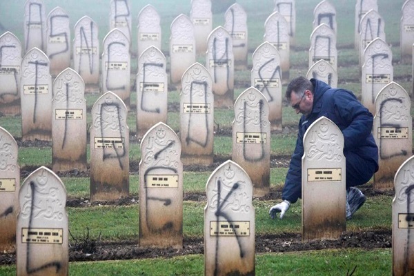 درست اوایل سال جاری، در شهر ایزلون، افراد ناشناس بیش از 30 سنگ قبر مسلمانان را خرد کردند.