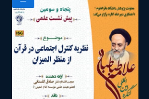 به گزارش خبرنگار ایکنا، نشست «نظریه کنترل اجتماعی در قرآن از منظر المیزان» امروز شنبه 26 آذرماه از سوی دانشگاه باقرالعلوم با سخنرانی حجتالاسلام والمسلمین صادق گلستانی، عضو هیئت علمی مؤسسه آموزشی و پژوهشی امام خمینی(ره) برگزار شد.