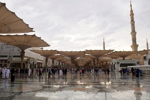 به گزارش ایکنا به نقل از المناطق، مسجدالنبی سحرگاه امروز، 12 دی باران کمسابقهای را تجربه کرد. در ویدئویی که در شبکههای اجتماعی انتشار یافته است، نمازگزاران در حالیکه زیر چترهای خود پناه گرفتهاند و صحن مسجد نیز مملو از آب ناشی از باران است، برای نماز به مسجد میروند.