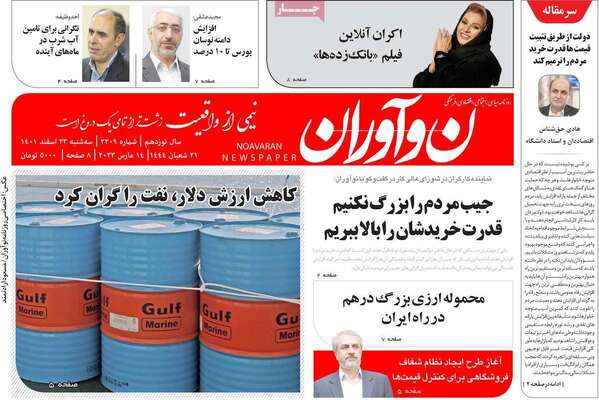 صفحه نخست روزنامههای سهشنبه ۲۳ اسفند ۱۴۰۱