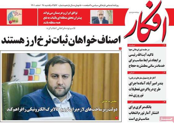 صفحه اول روزنامه های کشور