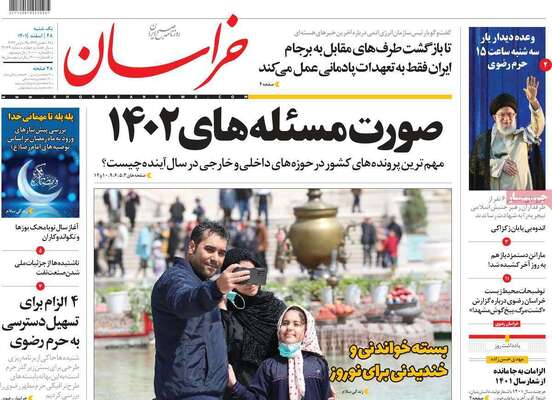 صفحه نخست روزنامههای صبح امروز یکشنبه ۲۸ اسفند ۱۴۰۱ را در ادامه مشاهده میکنید.