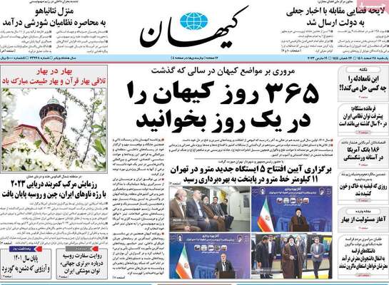 صفحه نخست روزنامههای یکشنبه ۲۸ اسفند ۱۴۰۱