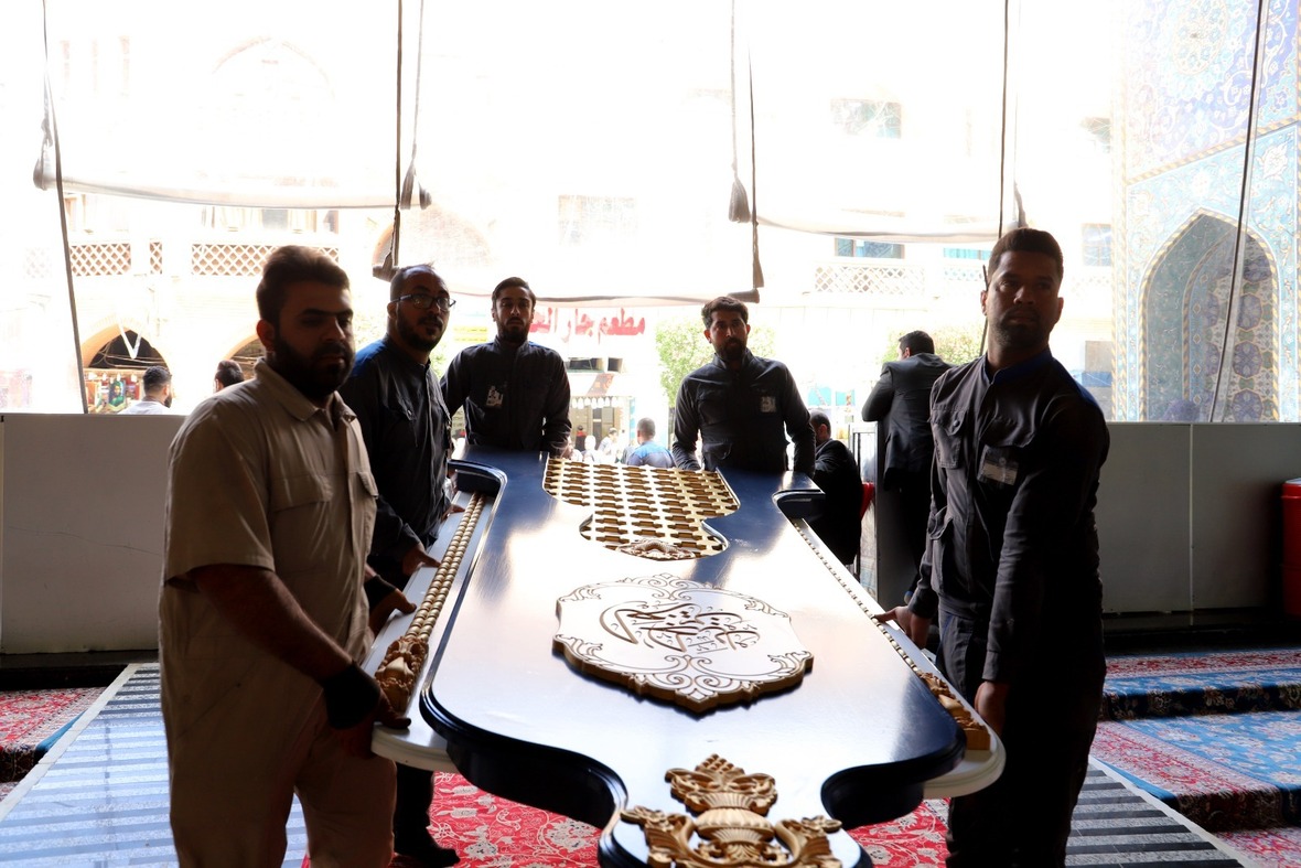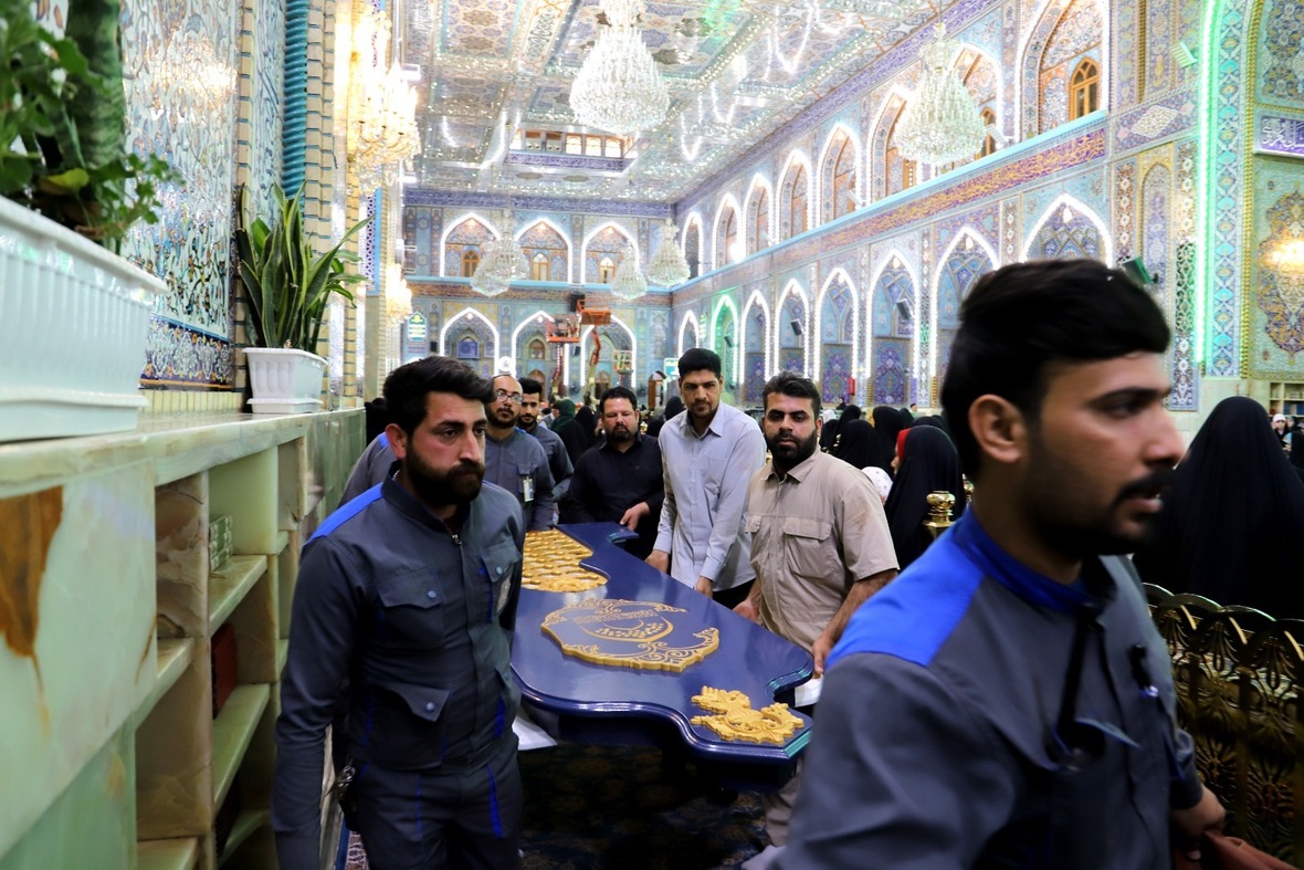 در ادامه تصاویری از مراحل دکورسازی جایگاه قاریان برای برنامه ختم قرآن رمضانی در حرم مطهر حسینی را مشاهده میکنید: