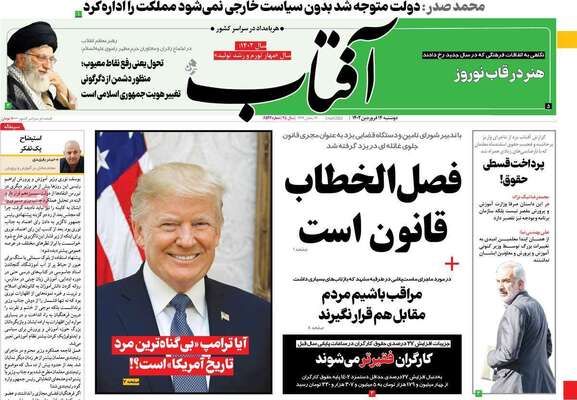 صفحه اول روزنامه های کشور