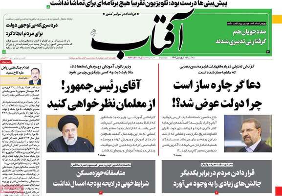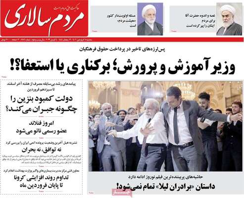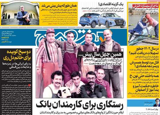 صفحه اول روزنامه های کشور